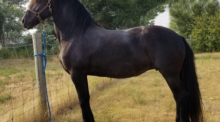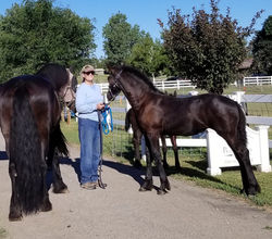 Marissa is a wonderful example of the full bodied Friesian that we all fell in love with years ago. She has a presence that is priceless. Regal. Confident. Commanding your attention without doing anything but stand in place. She is kind, patient, and willing to do whatever is asked. Her foals are all special and are usually the friendliest of the bunch. She is 16.2 with a kinship of 17.3.
